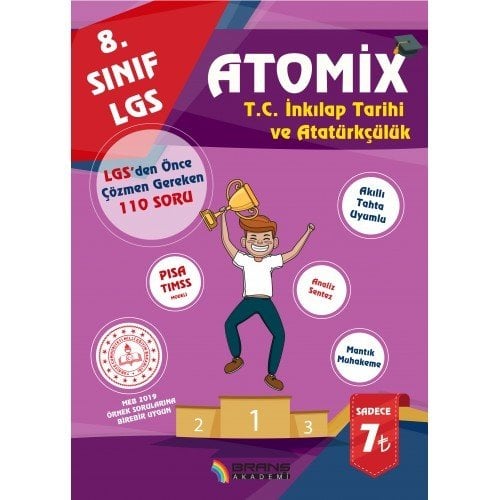 2019 LGS Atomix T.C. İnkılap Tarihi ve Atatürkçülük LGS den Önce Çözülmesi Gereken 110 Deneme Sorusu Branş Akademi