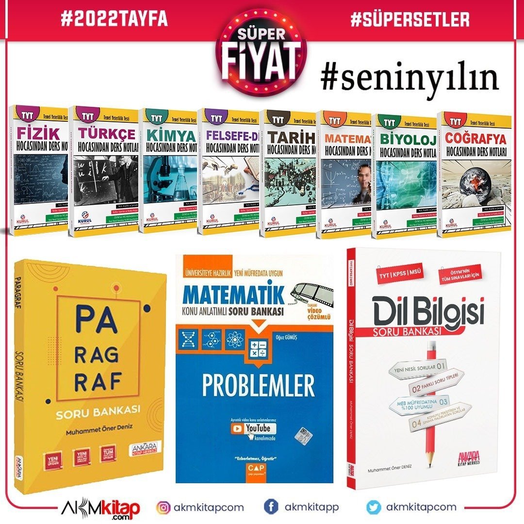 2022 Tayfa Dev Konu Seti ve AKM Paragraf Dil Bilgisi ile Çap Problemler Soru Bankası Seti