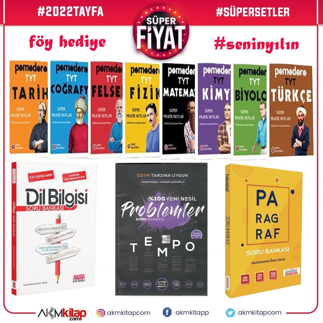 2022 Tayfa Pomodoro Konu ve AKM Paragraf Dil Bilgisi ile Tempo Problemler Soru Bankası Seti