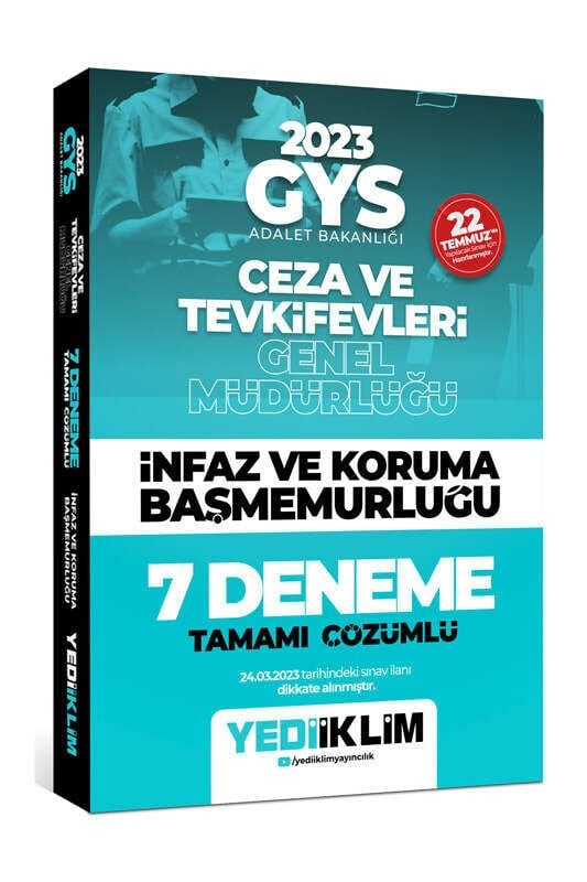2023 GYS Adalet Bakanlığı Ceza ve Tevkifleri Genel Müdürlüğü İnfaz ve Koruma Başmemurluğu 7 Deneme Tamamı Çözümlü Yediiklim Yayınları