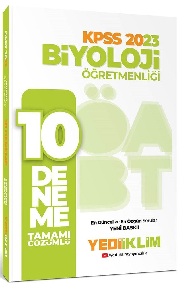2023 ÖABT Biyoloji Öğretmenliği Tamamı Çözümlü 10 Deneme Yediiklim Yayınları