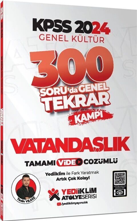2024 KPSS Genel Kültür Vatandaşlık 300 Soruda Tamamı Video Çözümlü Genel Tekrar Kampı Yediiklim Yayınları