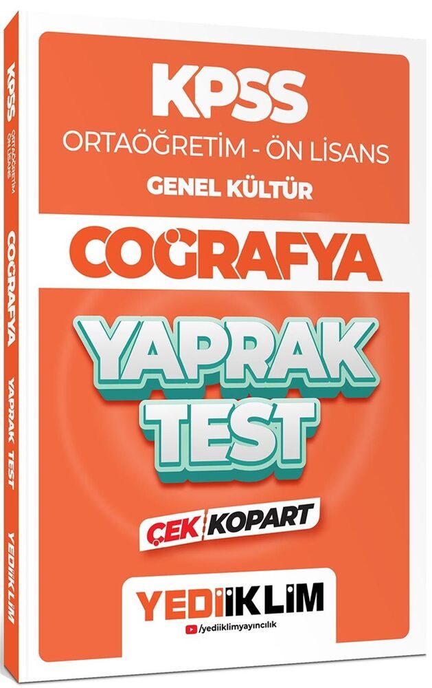 2024 KPSS Ortaöğretim Ön Lisans Genel Kültür Coğrafya Çek Kopart Yaprak Test Yediiklim Yayınları