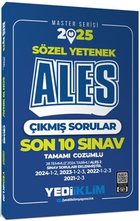 2025 ALES Sözel Yetenek Son 10 Sınav Tamamı Çözümlü Çıkmış Sorular Yediiklim Yayınları