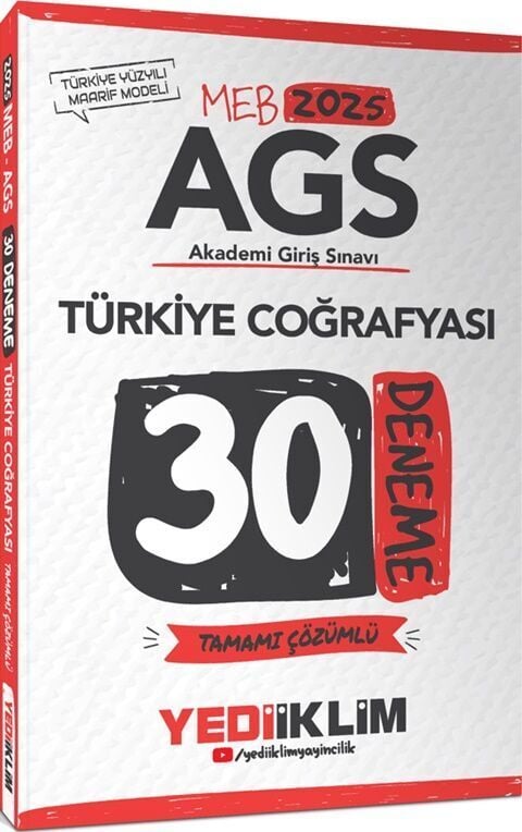 2025 MEB AGS Türkiye Coğrafyası Tamamı Çözümlü 30 Deneme Yediiklim Yayınları