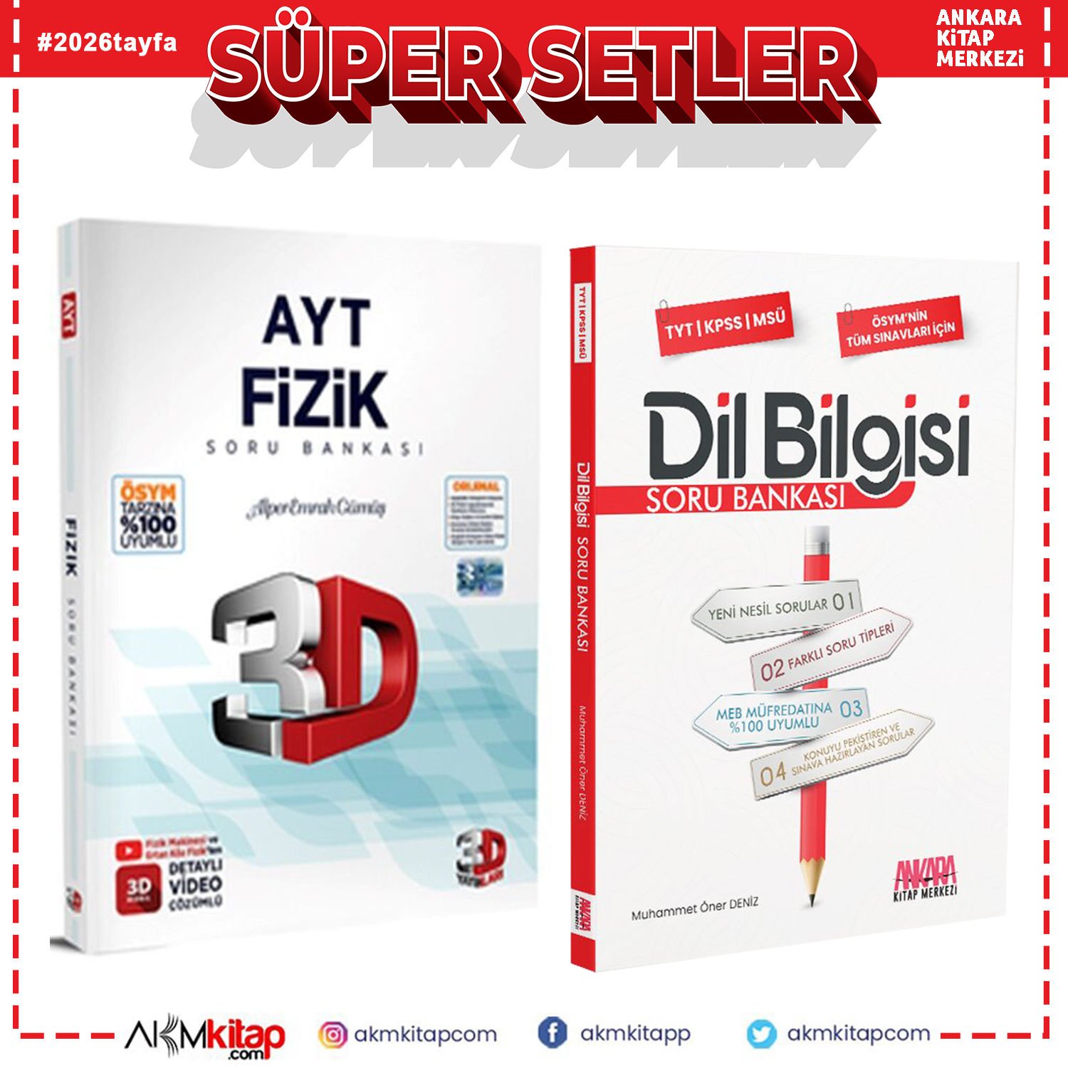3D AYT Fizik ve AKM Dil Bilgisi Soru Bankası Seti 2 Kitap