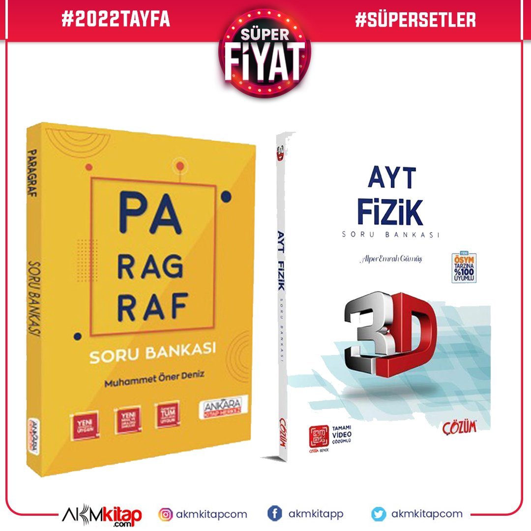 3D AYT Fizik ve AKM Paragraf Soru Bankası Seti 2 Kitap