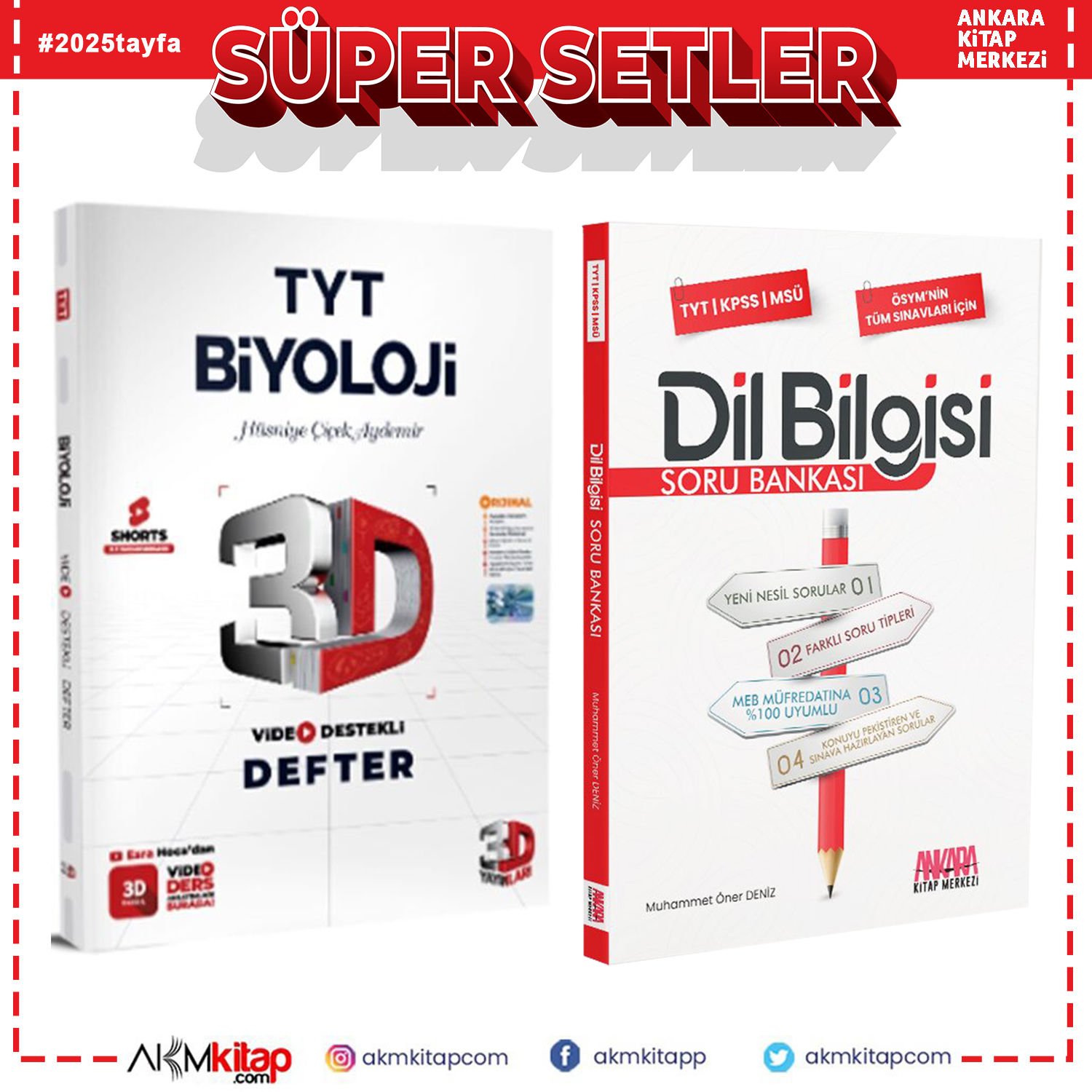 3D Yayınları TYT Biyoloji Video Destekli Defter ve AKM Dil Bilgisi Soru Bankası Seti 2 Kitap