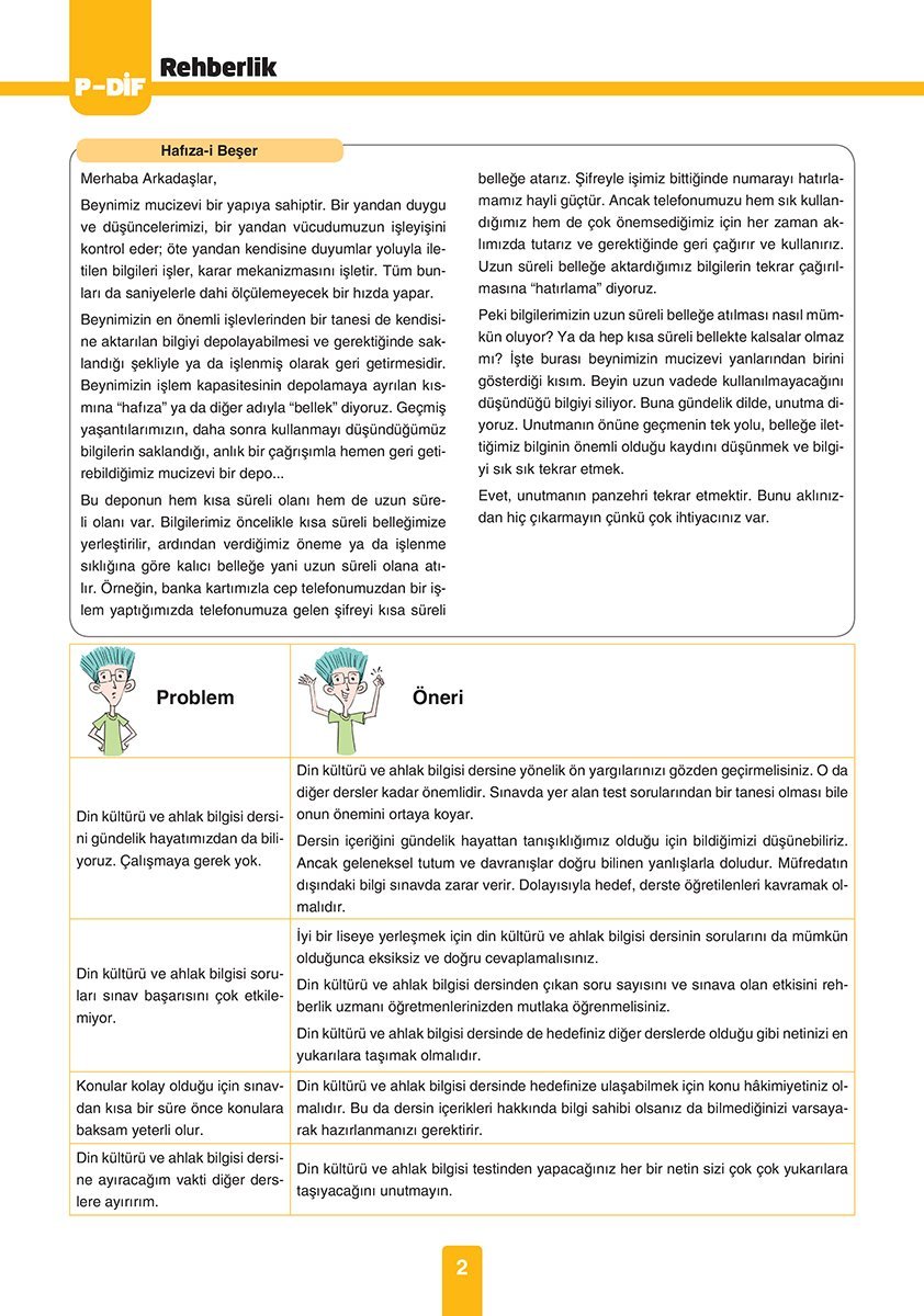 - Rehberlik bölümü içerir.