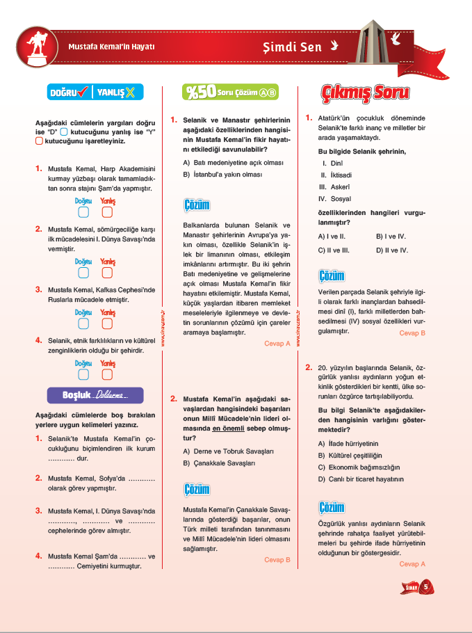 ANALİZ yeteneğini geliştirici "%50 Soru-Çözüm, Çıkmış Soru ve Editörün Sorusu" etkinlikleriyle konuyu eğlenceli hale getirmek için,
