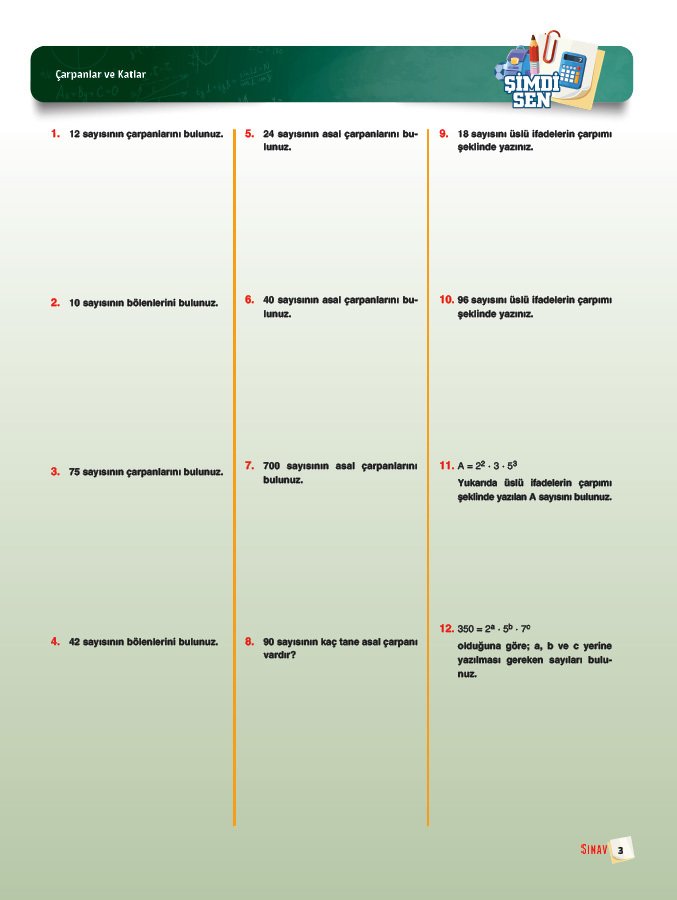 ANALİZ yeteneğini geliştirici "%50 Soru-Çözüm, Çıkmış Soru ve Editörün Sorusu" etkinlikleriyle konuyu eğlenceli hale getirmek için,