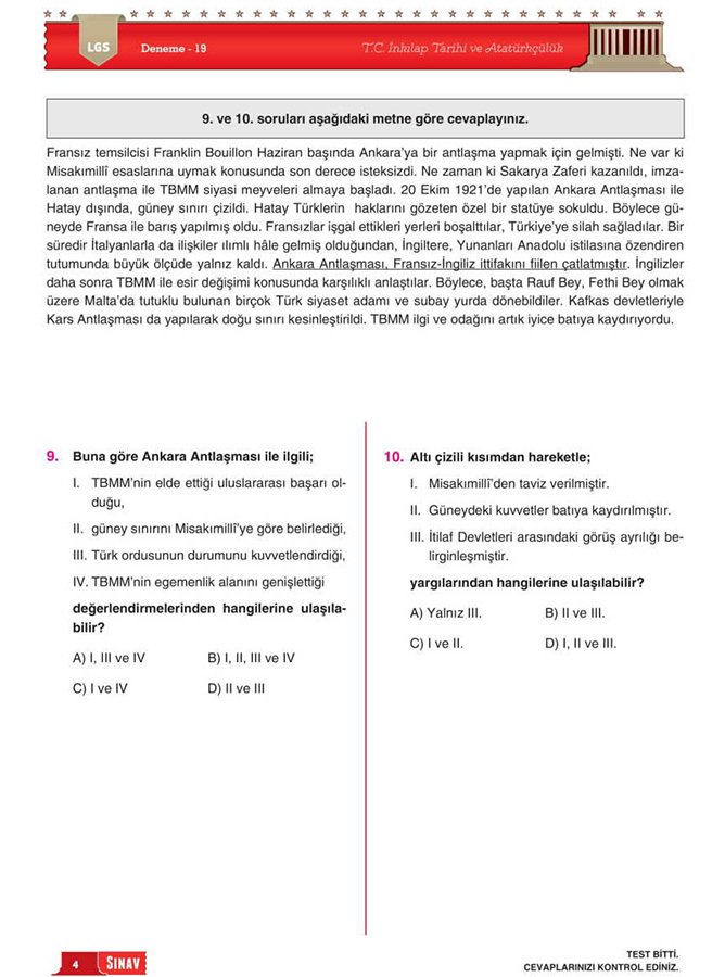 24 Adımda ekibinin sizin için hazırladığı LGS 24 T.C. İnkılap Tarihi ve Atatürkçülük Denemesi ile hayallerinize bir adım daha yaklaşacaksınız. Yeni nesil mantık - muhakeme sorularına yer verdiğimiz denemelerimiz ile başarıyı yakalayacaksınız. Geleceğinize katkıda bulunabilmek dileğiyle hepinize yürekten başarılar dileriz.
