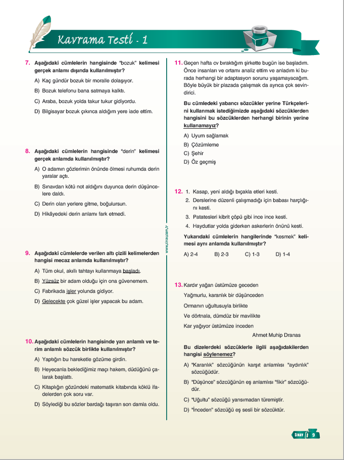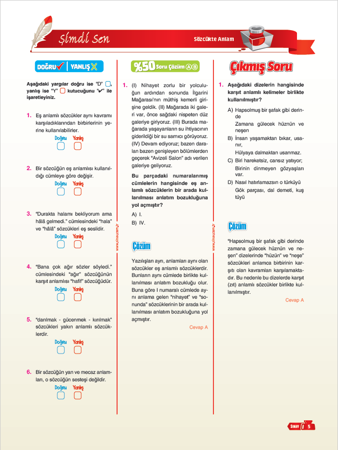 ANALİZ yeteneğini geliştirici "%50 Soru-Çözüm, Çıkmış Soru ve Editörün Sorusu" etkinlikleriyle konuyu eğlenceli hale getirmek için,