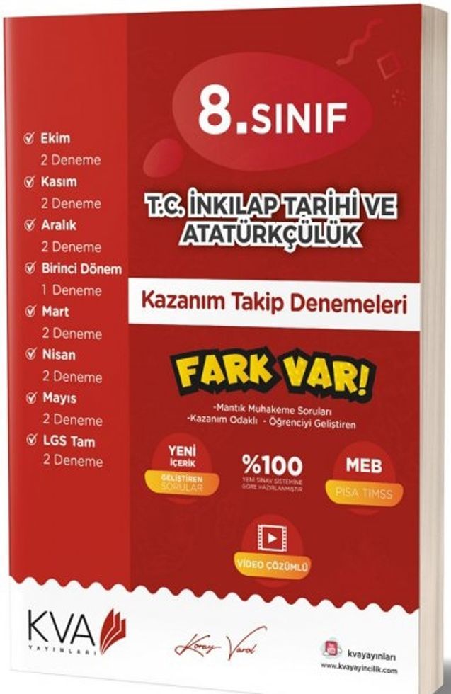 8. Sınıf T.C. İnkılap Tarihi ve Atatürkçülük Fark Var Kazanım Takip Denemeleri KVA Yayınları
