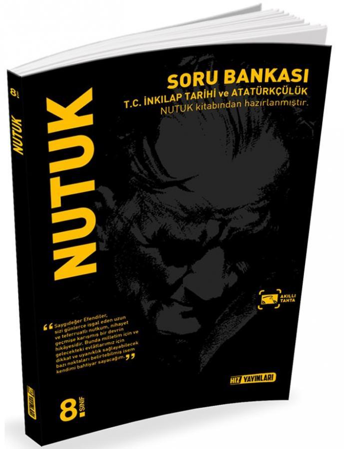 - NUTUK SORU BANKASI Ulu Önder Mustafa Kemal Atatürk'ün kadim mirası "NUTUK" referans alınarak hazırlanmış olup, sizlere sınava hazırlayacak temel kavramları içermektedir. Tamamı yeni müfredata uyumlu T.C. İnkılap Tarihi ve Atatürkçülük dersini Nutuk'un kazanımlarıyla inceleyeceksiniz. Doğrudan MEB kazanımlarına uygun olarak ve tamamen sınav tarzında özgün sorulardan oluşur.
