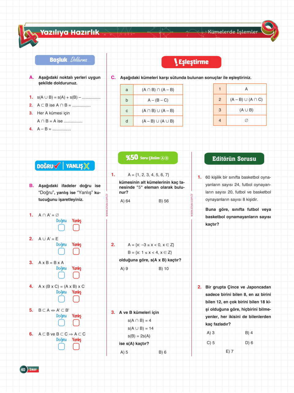 9.Sınıf Matematik 24 Adımda Özel Konu Anlatımlı Soru Bankası Sınav Yayınları