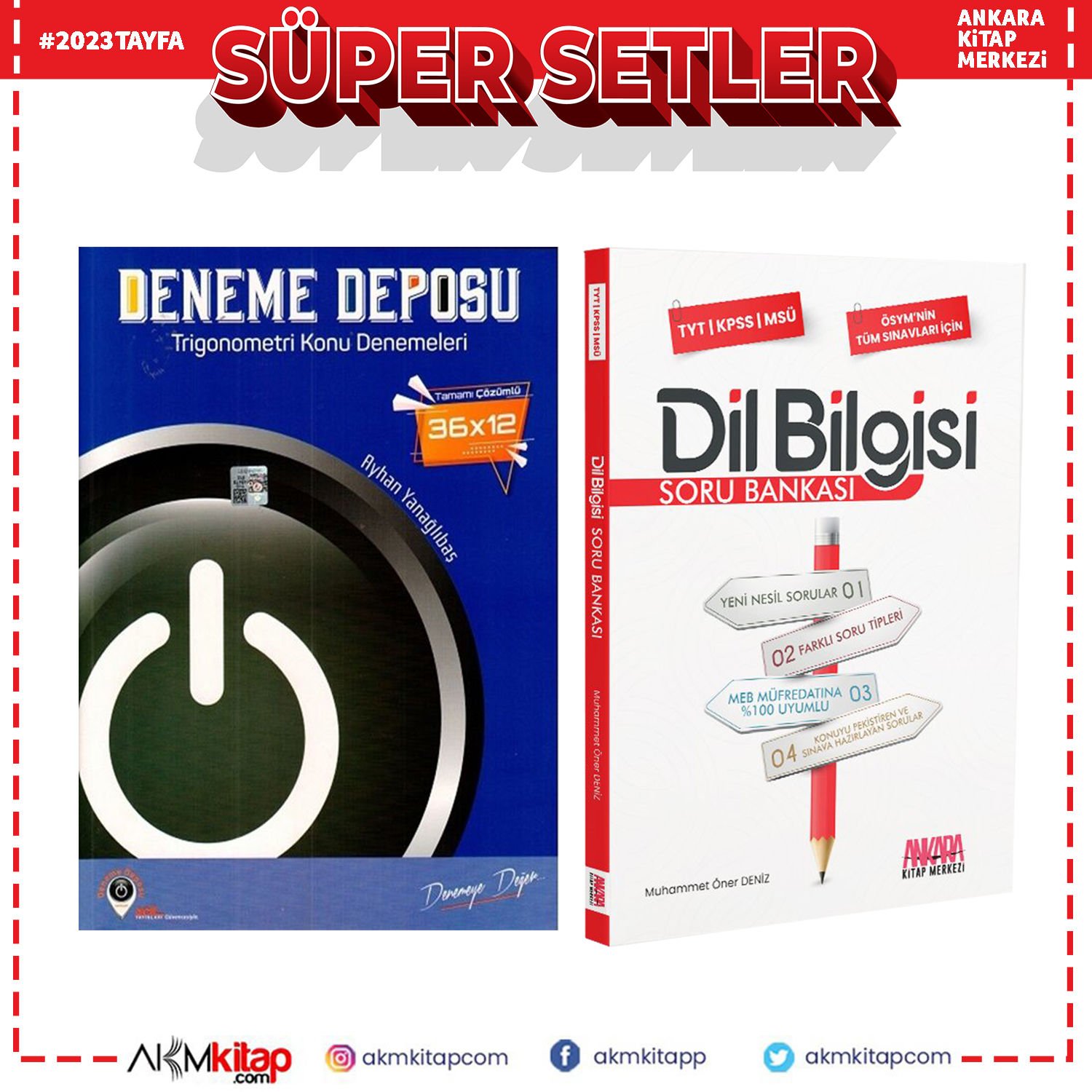 Acil AYT Trigonometri Konu Denemeleri ve AKM Dil Bilgisi Soru Bankası Seti 2 Kitap