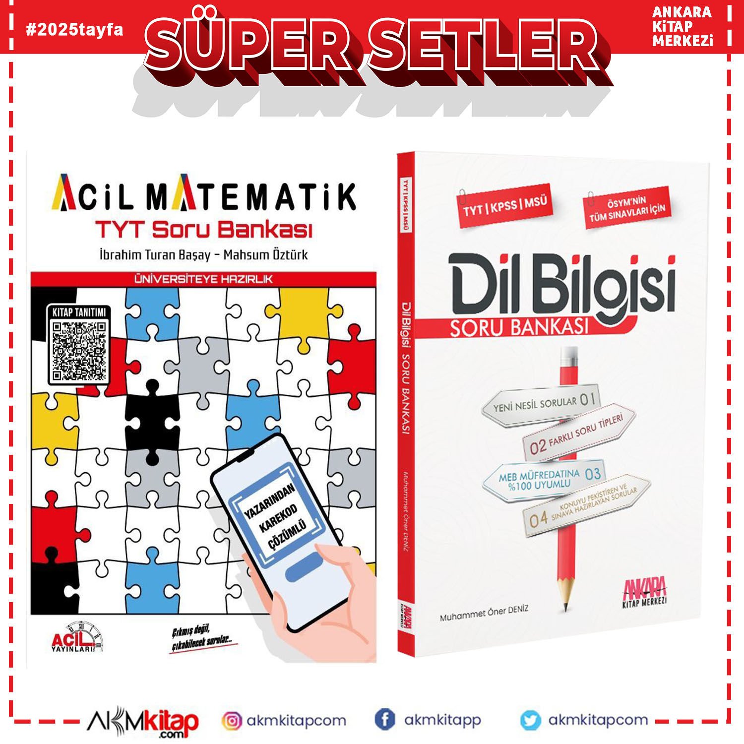 Acil TYT Matematik ve AKM Dil Bilgisi Soru Bankası Seti 2 Kitap