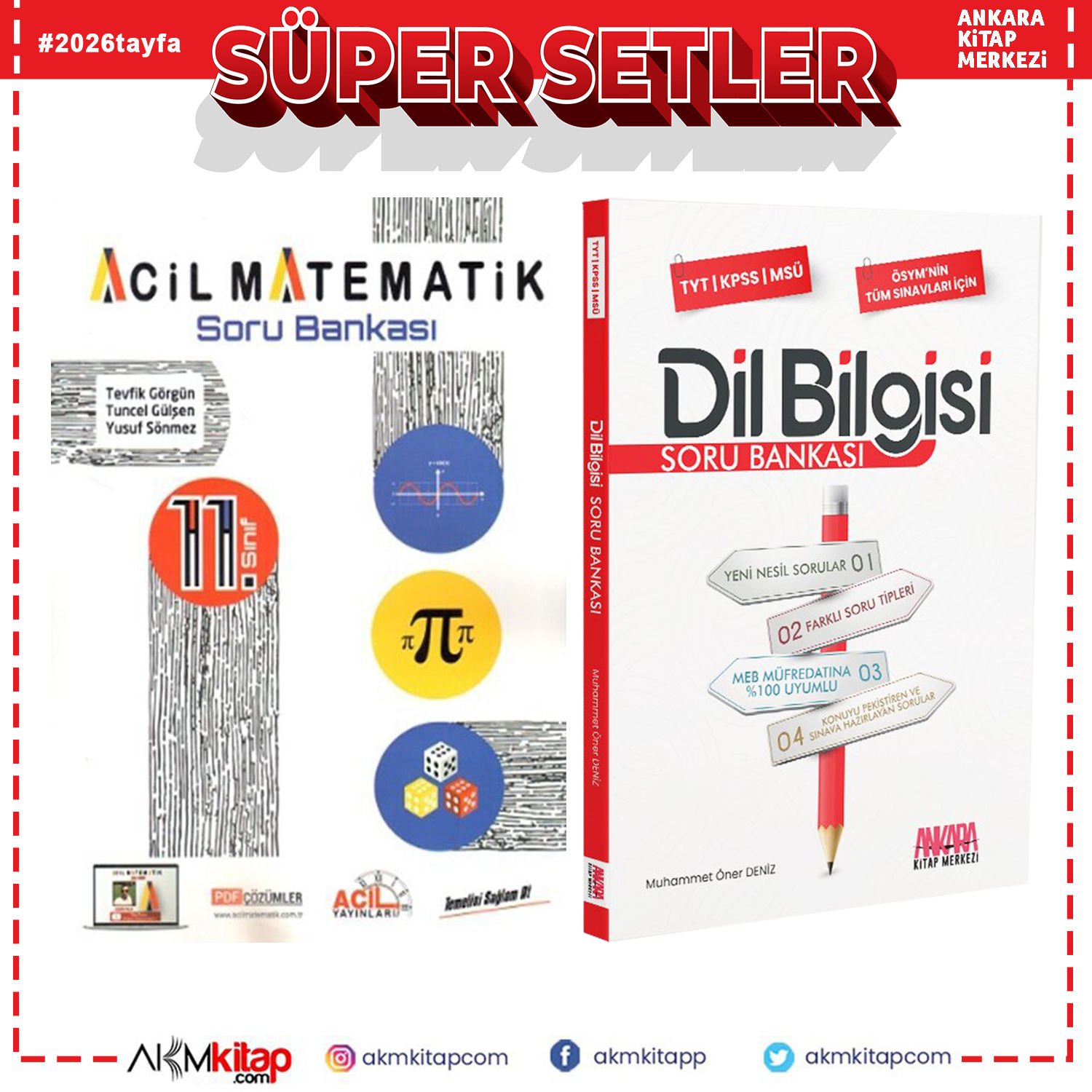 Acil Yayınları 11. Sınıf Acil Matematik ve AKM Dil Bilgisi Soru Bankası Seti 2 Kitap