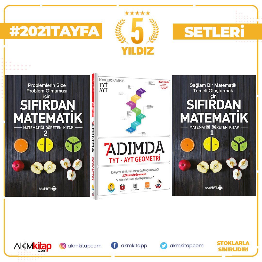 Adım Adım Sıfırdan Matematik 1 ve 2 Tonguç Akademi TYT 7 Adımda Geometri 3 Kitap Set