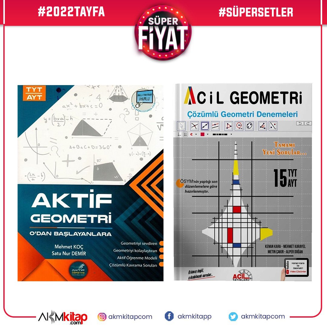 Aktif Öğrenme TYT AYT Geometri 0 dan Başlayanlara ve Acil Geometri Deneme Seti 2 Kitap