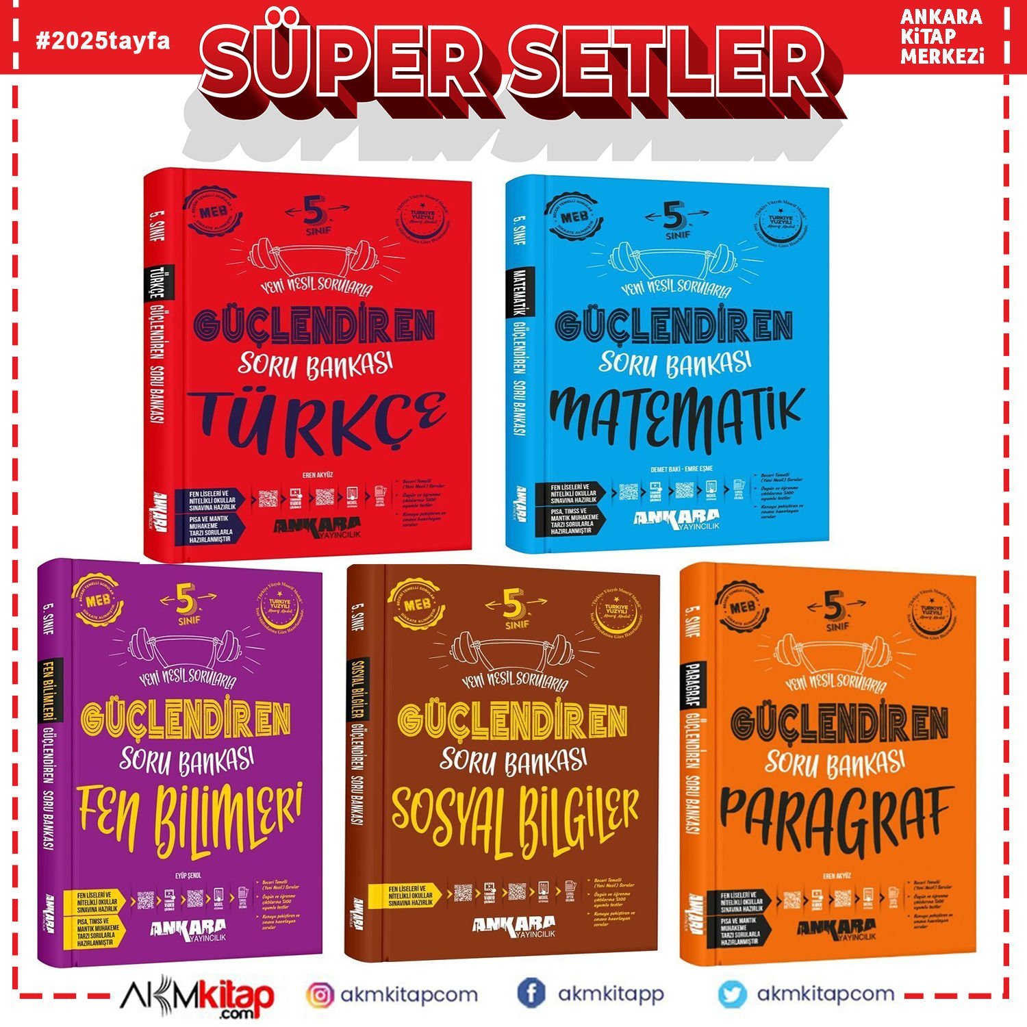 Ankara Yayıncılık 5.Sınıf Türkçe Matematik Paragraf Fen ve Sosyal Bilgiler Soru Bankası Seti 5 Kitap
