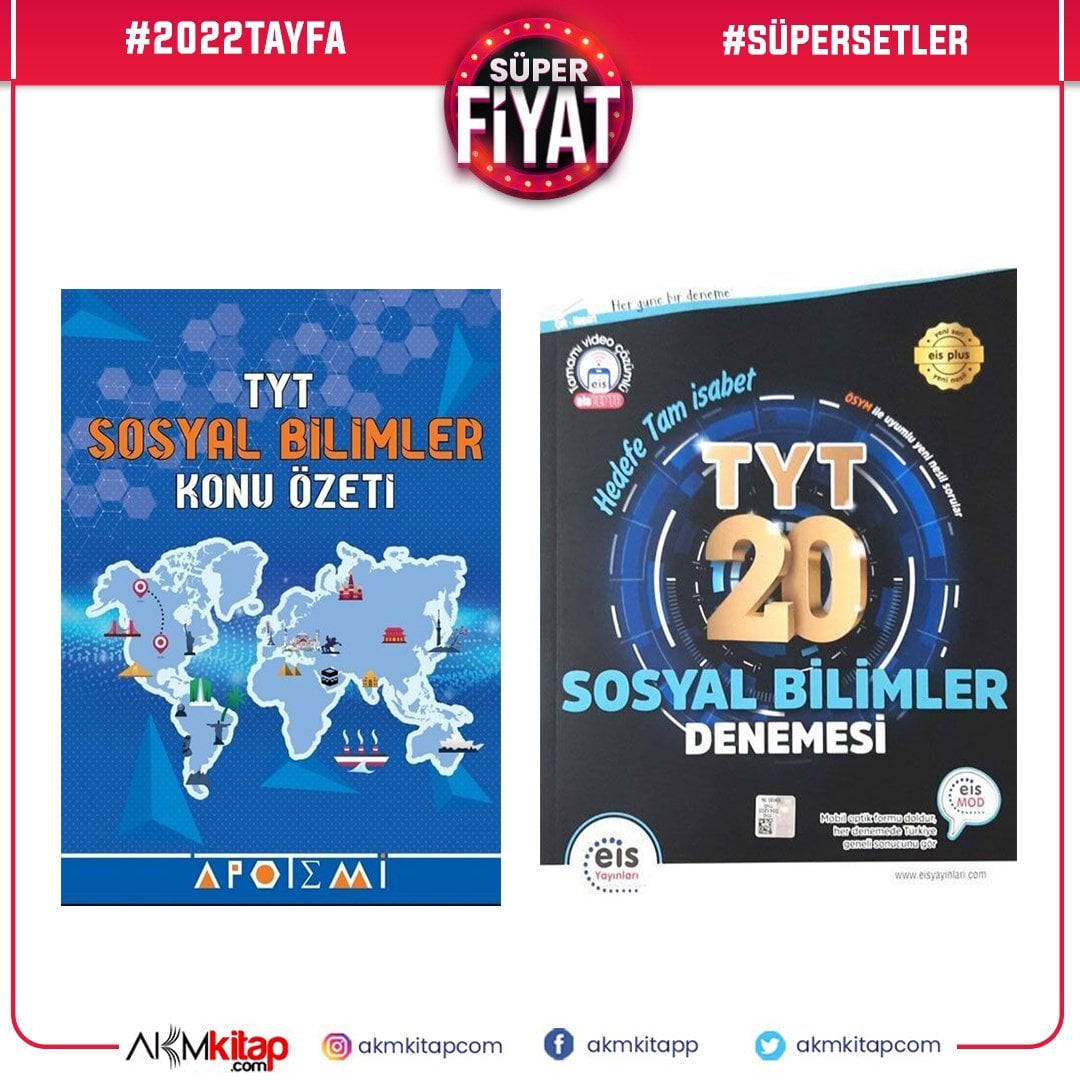 Apotemi TYT Sosyal Bilimler Konu Özetli ve Eis TYT Sosyal Bilimler Deneme Seti 2 Kitap