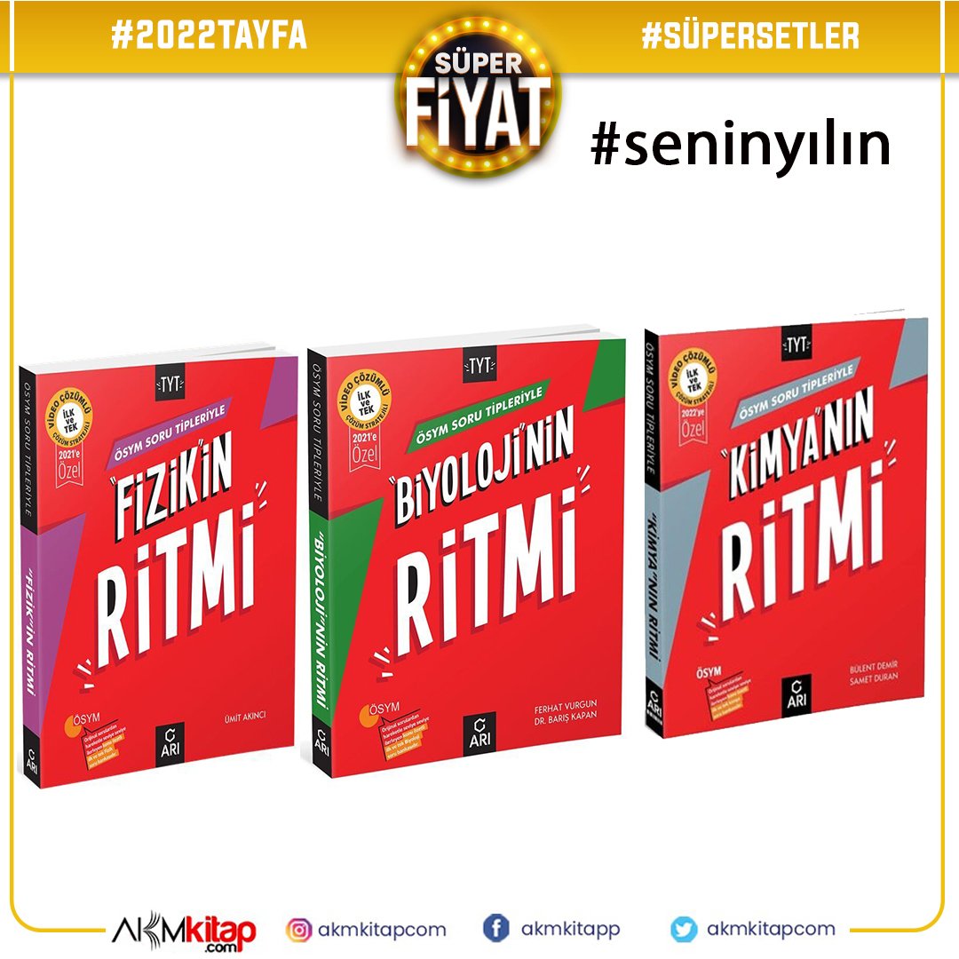 Arı Yayınları TYT Fizik Kimya ve Biyoloji Ritim Serisi Seti 3 Kitap