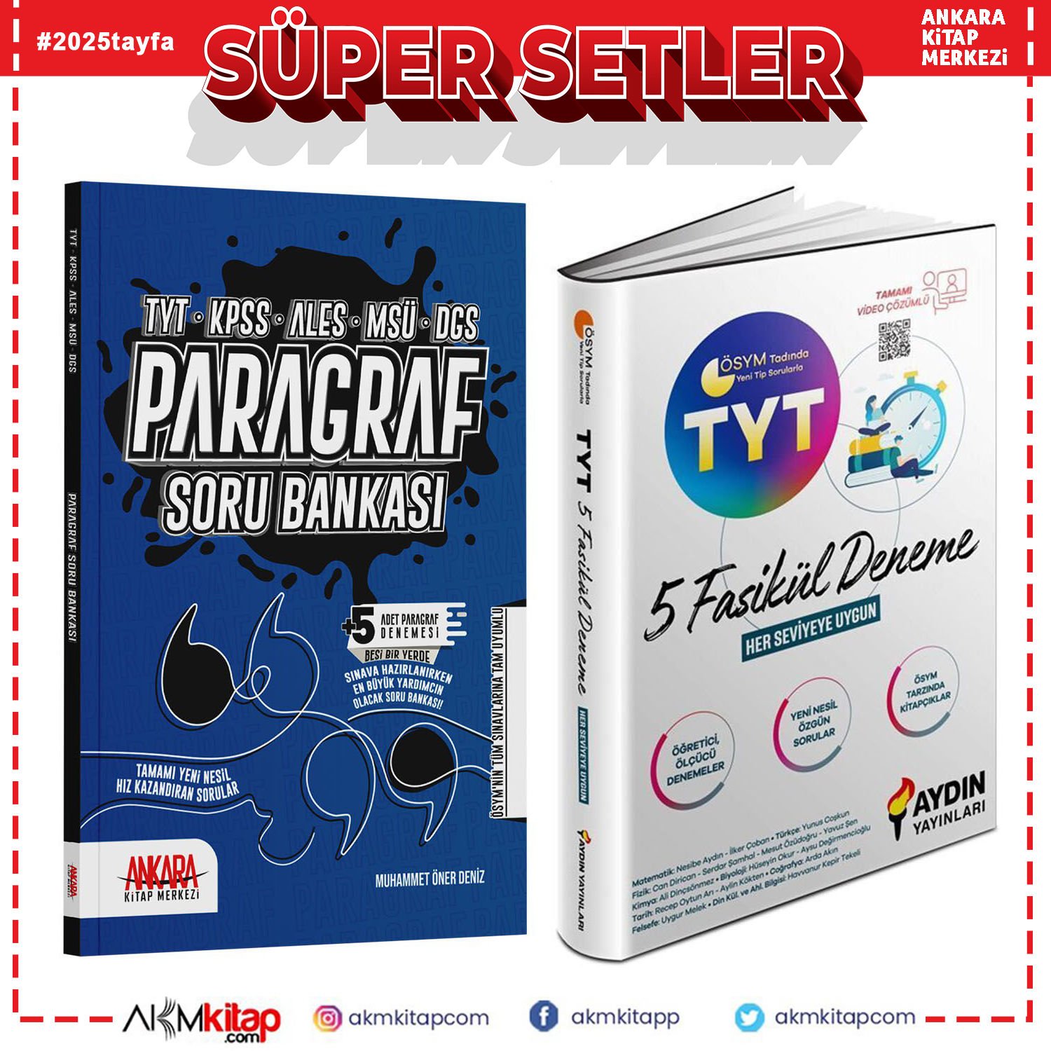 Aydın TYT 5 Fasikül Deneme ve AKM Paragraf Soru Bankası Seti 2 Kitap