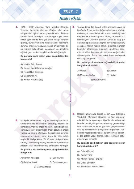 AYT Cumhuriyet Dönemi Türk Edebiyatı Soru Bankası Karekök Yayınları