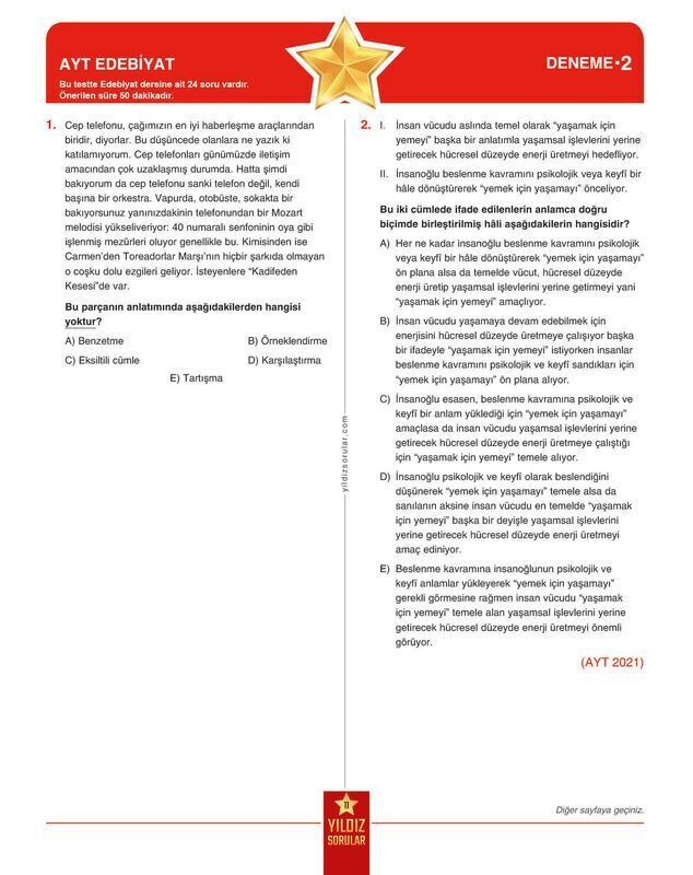 AYT Edebiyat 8 Deneme Yıldız Sorular