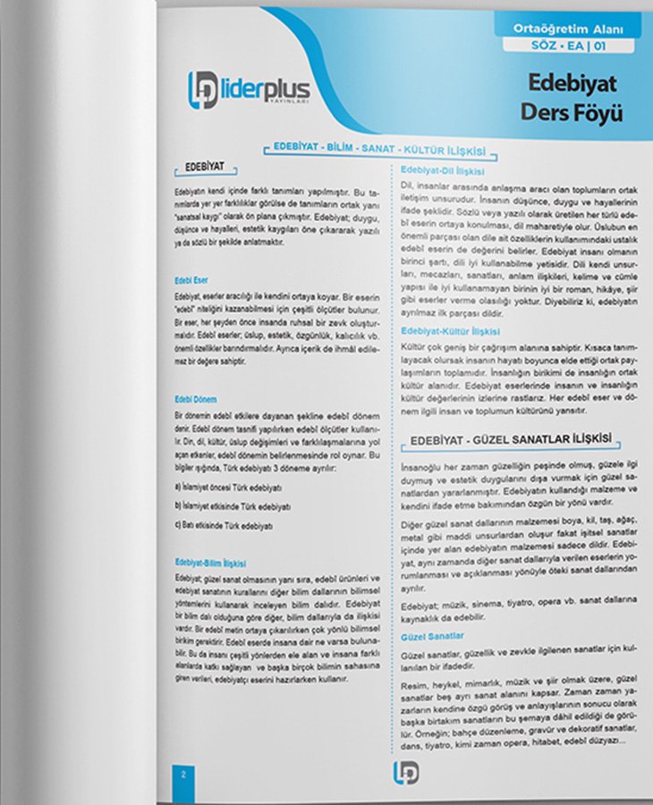 AYT Edebiyat Ders Anlatım Föyleri Lider Plus Yayınları