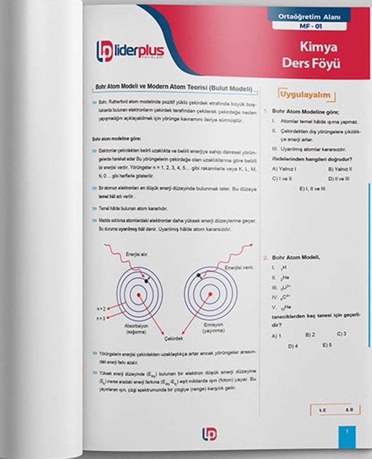 AYT Kimya Ders Anlatım Föyleri Lider Plus Yayınları
