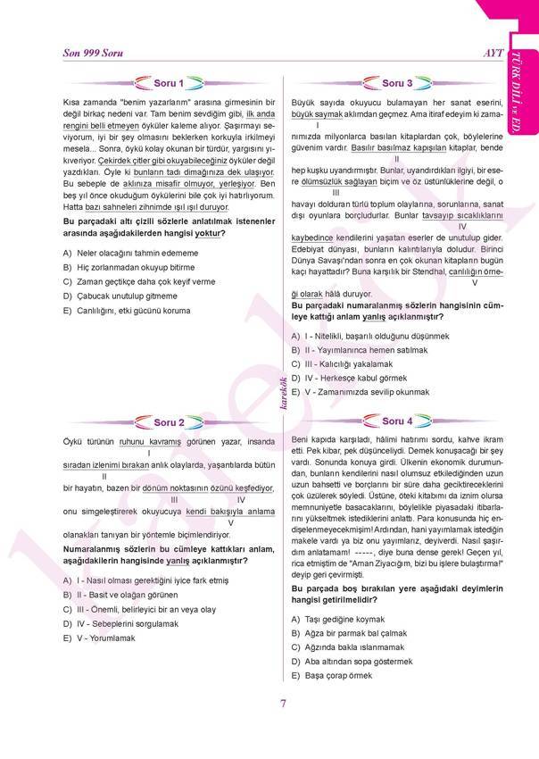 AYT Öncesi Çözülmesi Gereken Son 999 Soru Sözel Karekök Yayınları