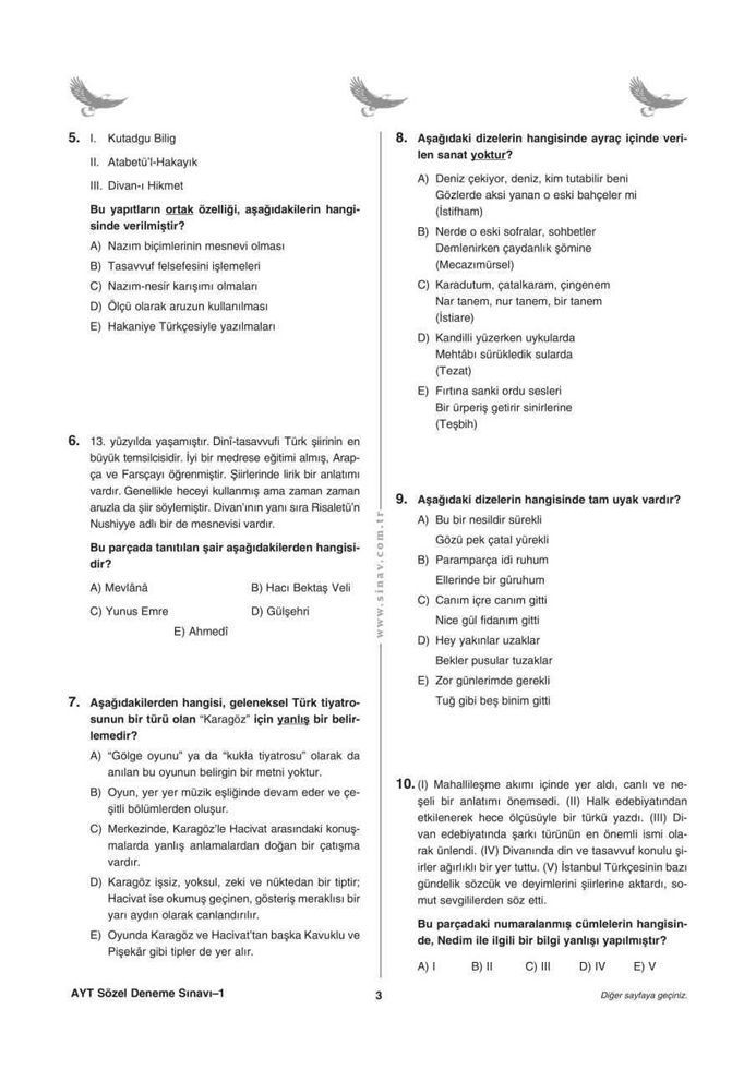AYT Sözel 10 Deneme Seti Sınav Yayınları