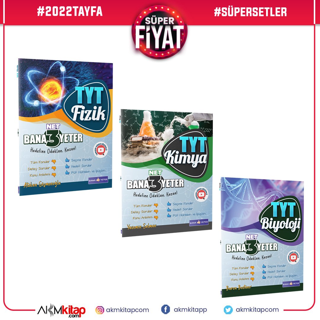 Bana Yeter Yayınları TYT Fizik Kimya ve Biyoloji 3 Net Yeter Soru Bankası Seti