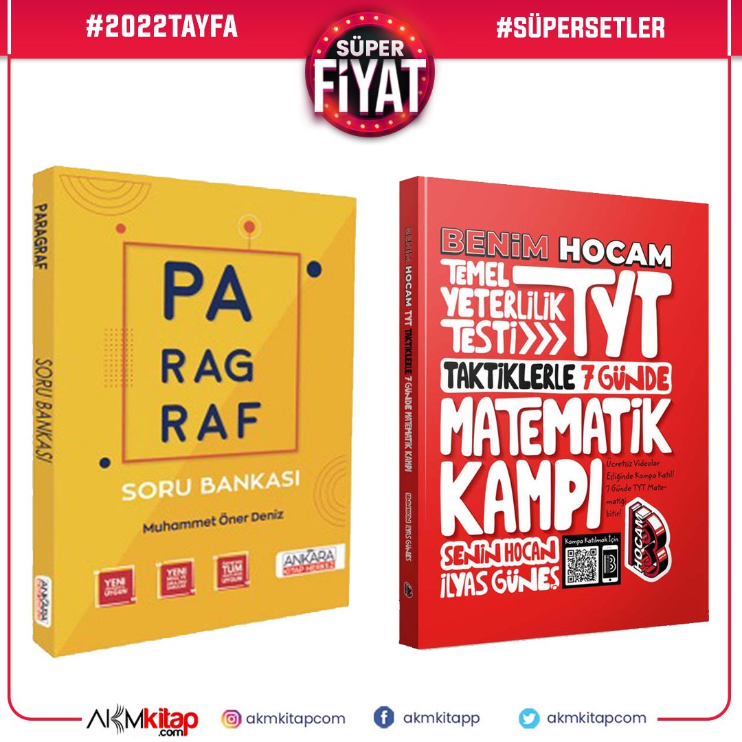 Benim Hocam TYT 7 Günde Matematik Kampı ve AKM Paragraf Soru Bankası Seti 2 Kitap