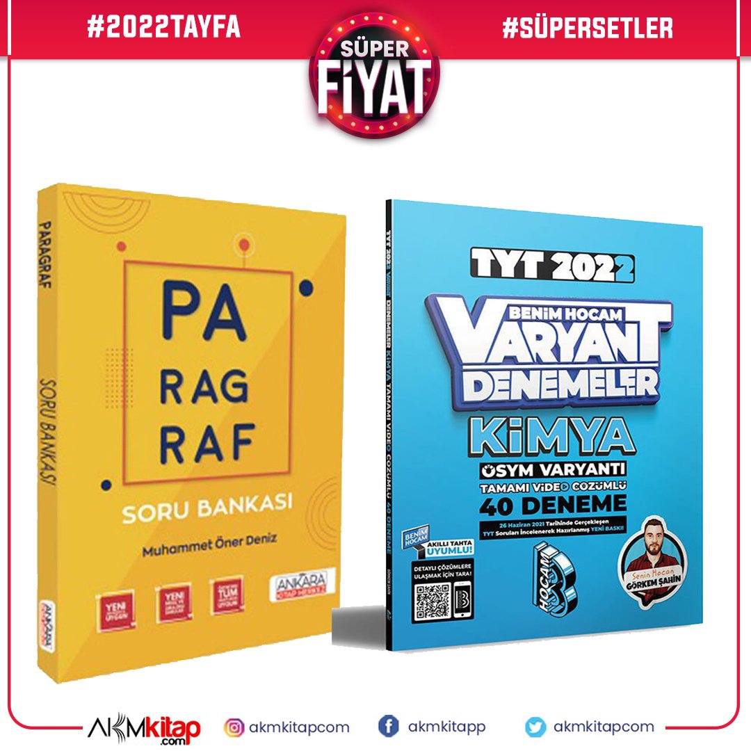 Benim Hocam TYT Kimya Deneme ve AKM Paragraf Soru Bankası Seti 2 Kitap
