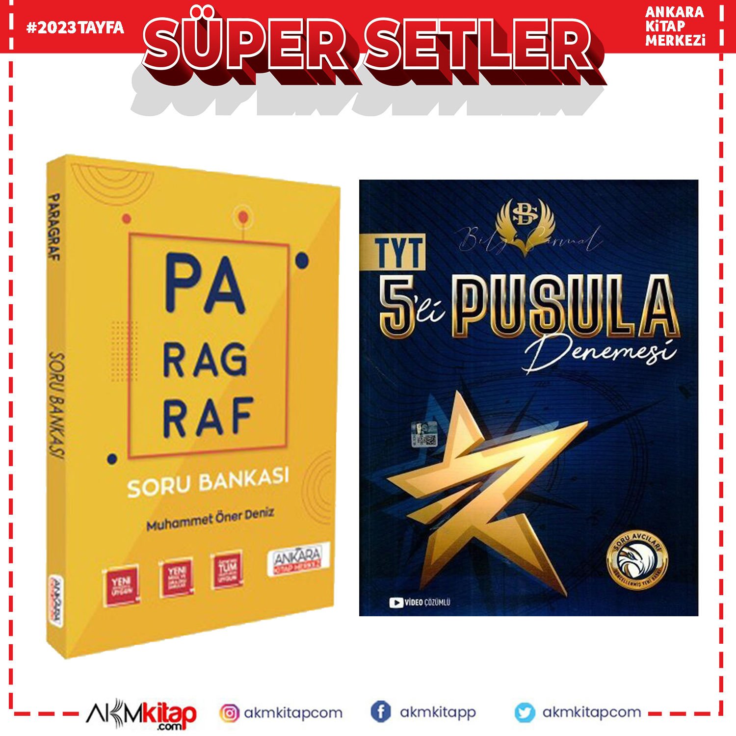 Bilgi Sarmal TYT 5 li Pusula Deneme ve AKM Paragraf Soru Bankası Seti 2 Kitap