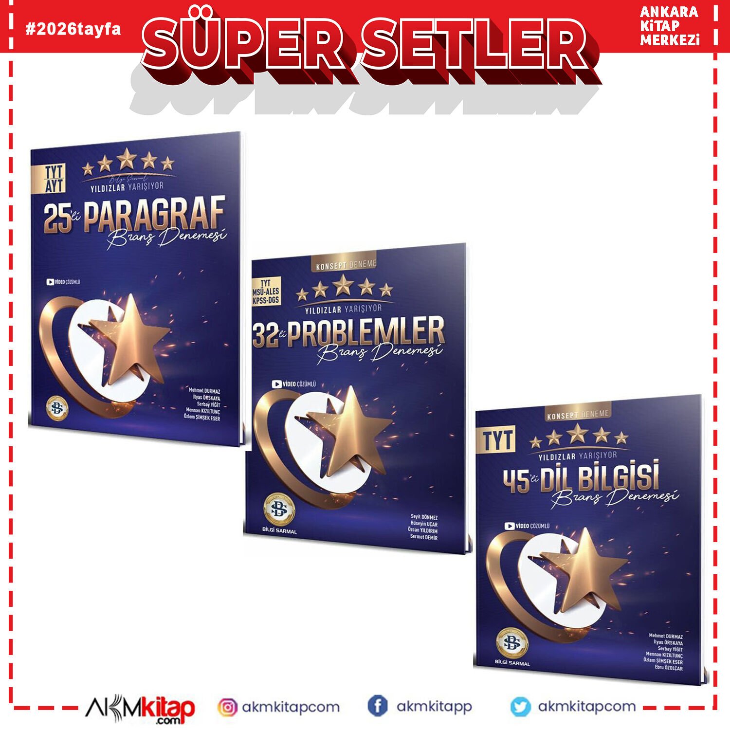 Bilgi Sarmal TYT Yıldızlar Yarışıyor Paragraf Problemler ve Dil Bilgisi Deneme Seti 3 Kitap, TYT sınavına hazırlanan öğrenciler için özel olarak tasarlanmış kapsamlı bir kaynak setidir. Bu set, paragraf, problemler ve dil bilgisi konularına odaklanan deneme sınavlarından oluşur ve öğrencilerin sınav performanslarını artırmayı hedefler. Bilgi Sarmal TYT Yıldızlar Yarışıyor Paragraf Problemler ve Dil Bilgisi Deneme Seti 3 Kitap, her biri farklı sınav formatlarına uygun şekilde hazırlanmış denemeler içerir. Böylece öğrenciler, gerçek sınav ortamını deneyimleyerek eksik oldukları alanları belirleyebilir ve çalışmalarını daha verimli hale getirebilir. Bu set, TYT sınavında başarıyı hedefleyenler için vazgeçilmez bir destek sağlar.