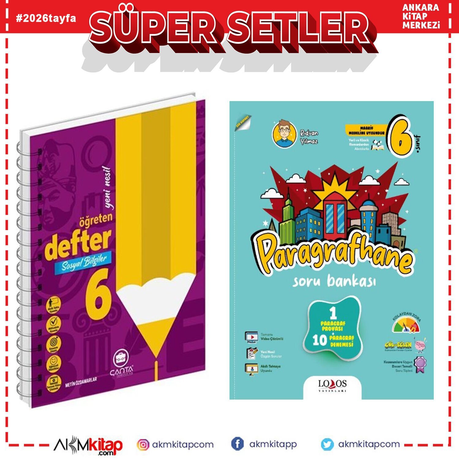 Çanta Yayınları 6. Sınıf Sosyal Bilgiler Okula Yardımcı Öğreten Defter ve Lodos Paragrafhane Soru Bankası Seti 2 Kitap