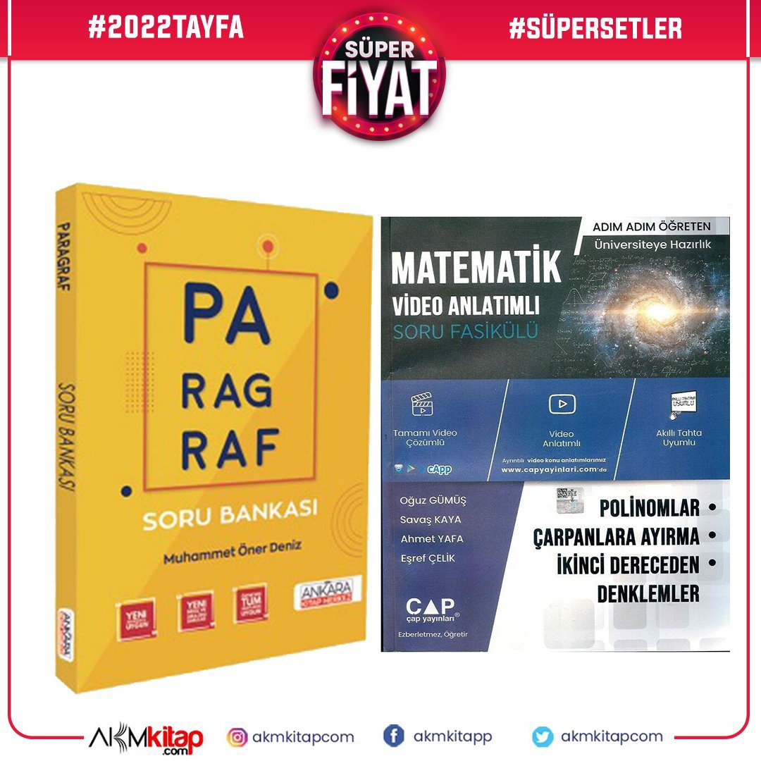 Çap Yayınları Polinomlar Çarpanlara Ayırma İkinci Dereceden Denklemler ve AKM Paragraf Soru Bankası Seti 2 Kitap