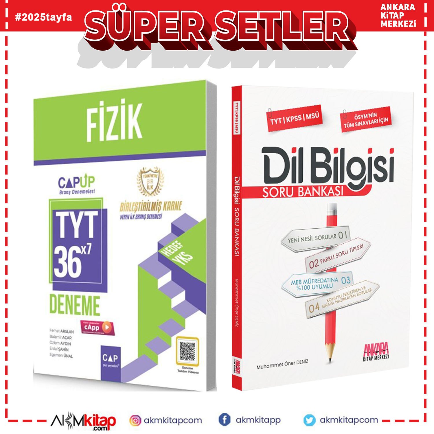 Çap Yayınları TYT Fizik 36 x 7 Up Deneme ve AKM Dil Bilgisi Soru Bankası Seti 2 Kitap
