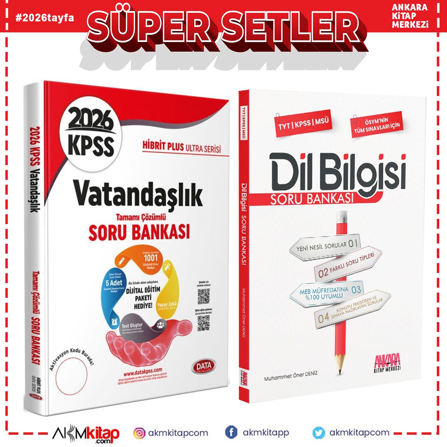 Data 2026 KPSS Vatandaşlık Hibrit Plus Ultra Serisi ve AKM Dil Bilgisi Soru Bankası Seti 2 Kitap