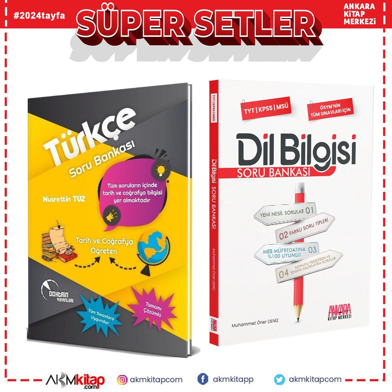 Doktrin Tarih ve Coğrafya Öğreten Türkçe ile AKM Dil Bilgisi Soru Bankası Seti 2 Kitap