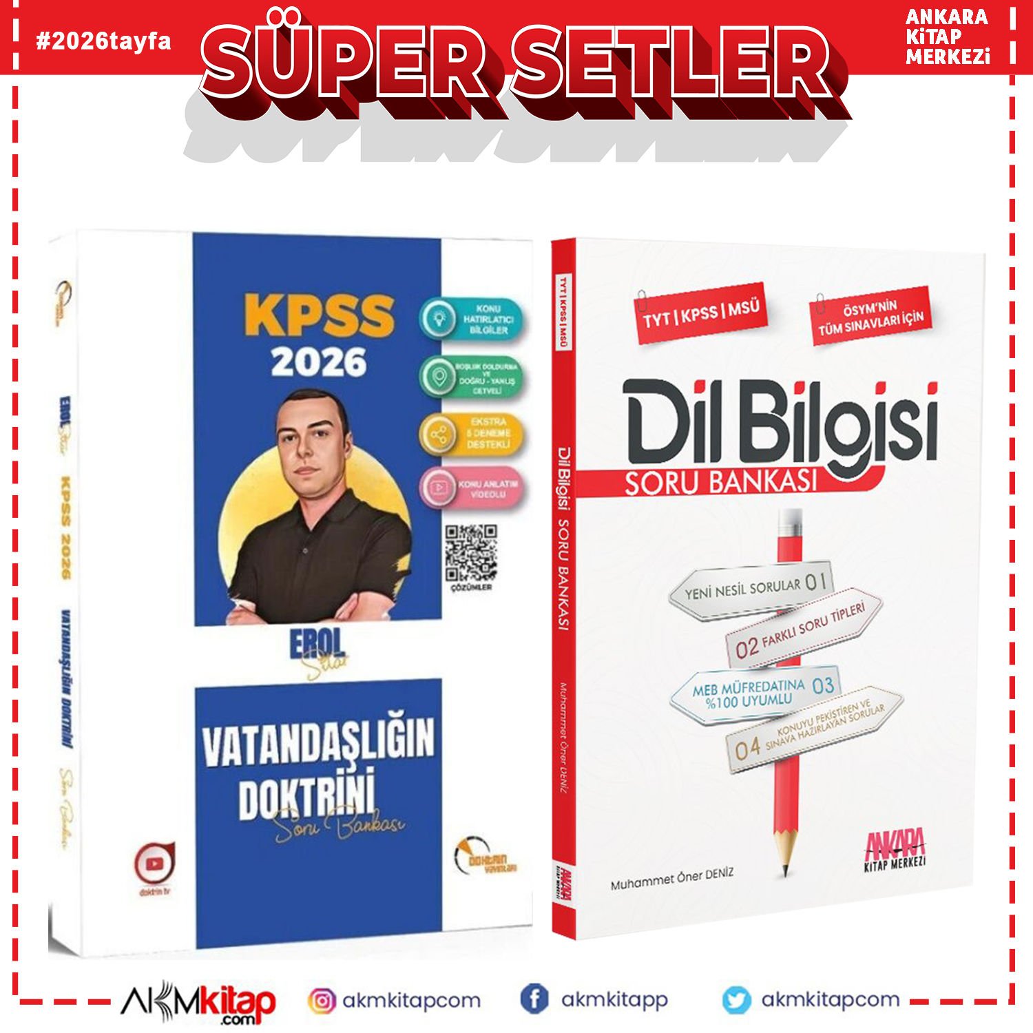 Doktrin Yayınları 2026 KPSS Vatandaşlık Vatandaşlığın Doktrini ve AKM Dil Bilgisi Soru Bankası Seti 2 Kitap