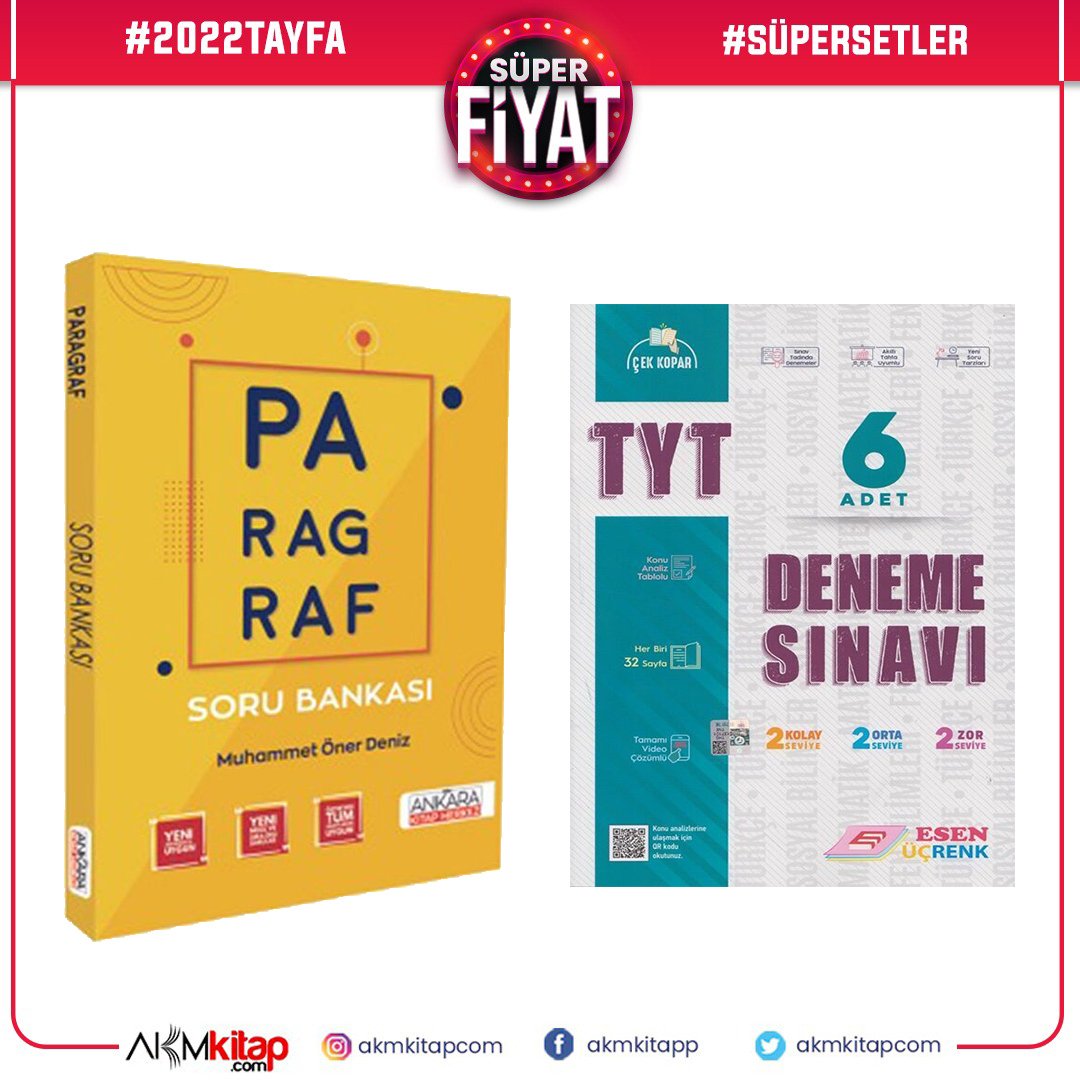 Esen Yayınları TYT 6 lı Deneme ve AKM Paragraf Soru Bankası Seti 2 Kitap
