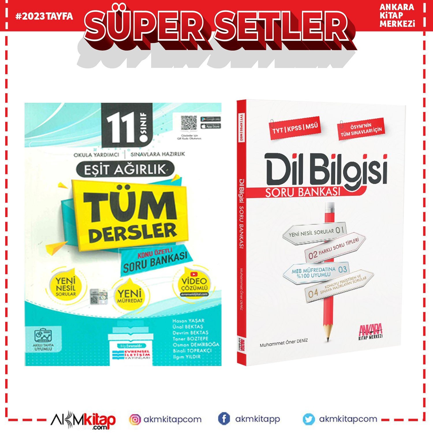 Evrensel İletişim 11.Sınıf Eşit Ağırlık ve AKM Dil Bilgisi Soru Bankası Seti 2 Kitap
