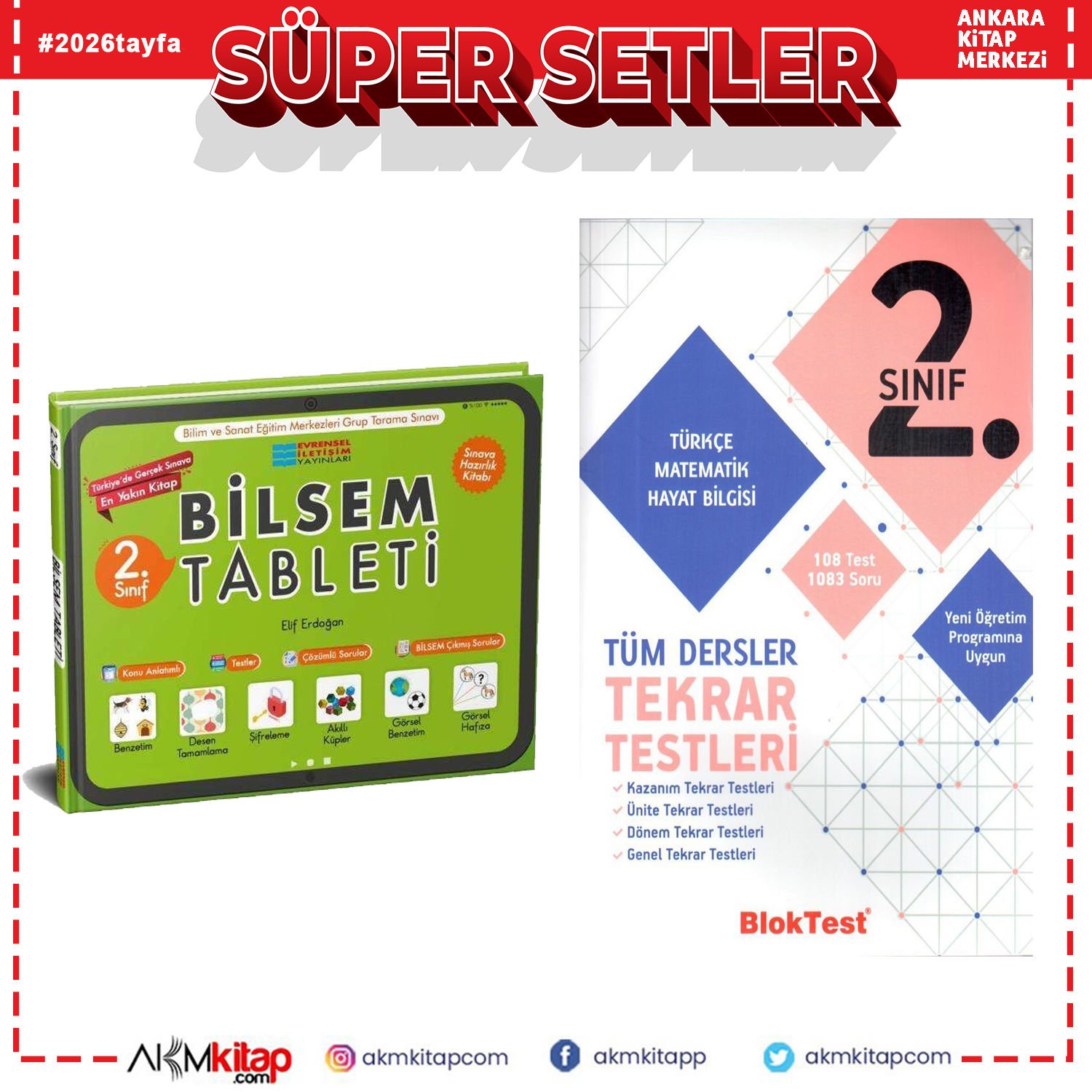 Evrensel İletişim 2.Sınıf Bilsem Tablet ve Bloktest Tüm Dersler Tekrar Testleri Seti 2 Kitap