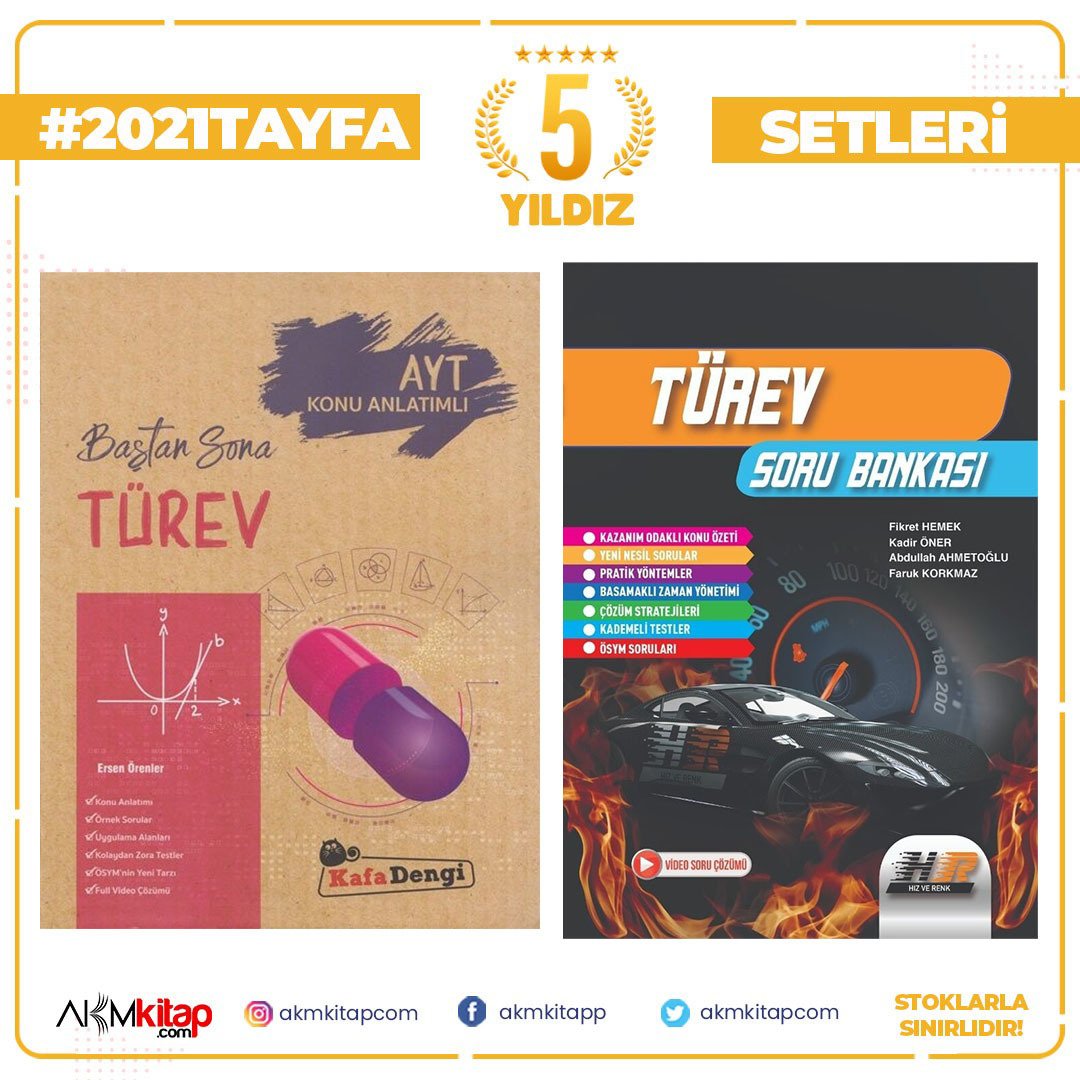 Kafa Dengi AYT Baştan Sona Türev Konu Anlatımı ile Hız ve Renk Türev Soru Bankası Seti 2 Kitap